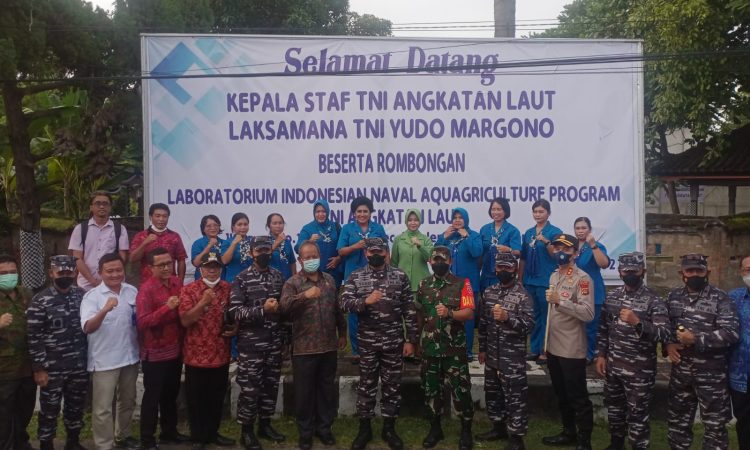 Buleleng – Kepala Staf Angkatan Laut (Kasal) Laksamana TNI Yudo Margono didampingi Ketua Umum Jalasenastri Ny. Vero Yudo Margono melaksanakan peninjauan ke Laboratorium Indonesian Naval Aquagriculture Program (INAP) yang merupakan program pengembangan budidaya laut terbaru karya anak bangsa, di Desa Lovina, Kota Singaraja, Kab. Buleleng, Bali Selasa (22/02).
