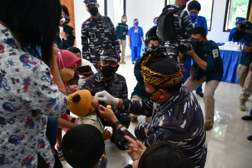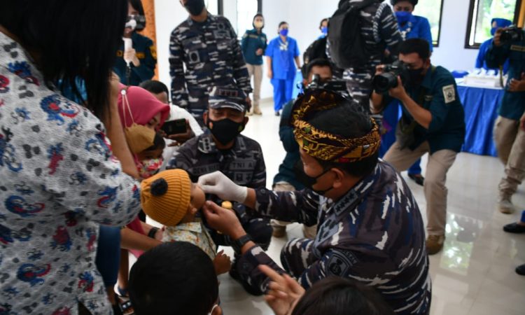 Denpasar – Guna meningkatkan kepedulian terhadap kesehatan warga Bali, Kepala Staf Angkatan Laut (Kasal) Laksamana TNI Yudo Margono didampingi Ketua Umum Jalasenastri Ny. Vero Yudo Margono memberikan langsung bantuan kesehatan berupa pemberian Vitamin A dalam kegiatan Posyandu kepada para balita dan pemberian 300 vaksin astra zaneca untuk dosis pertama, kedua maupun ketiga kepada masyarakat umum dengan menerjunkan vaksinator gabungan dari TNI-Polri, bertempat di Balai Kesehatan Pangkalan TNI AL (Lanal) Denpasar, Bali. Selasa, (22/2/2022).