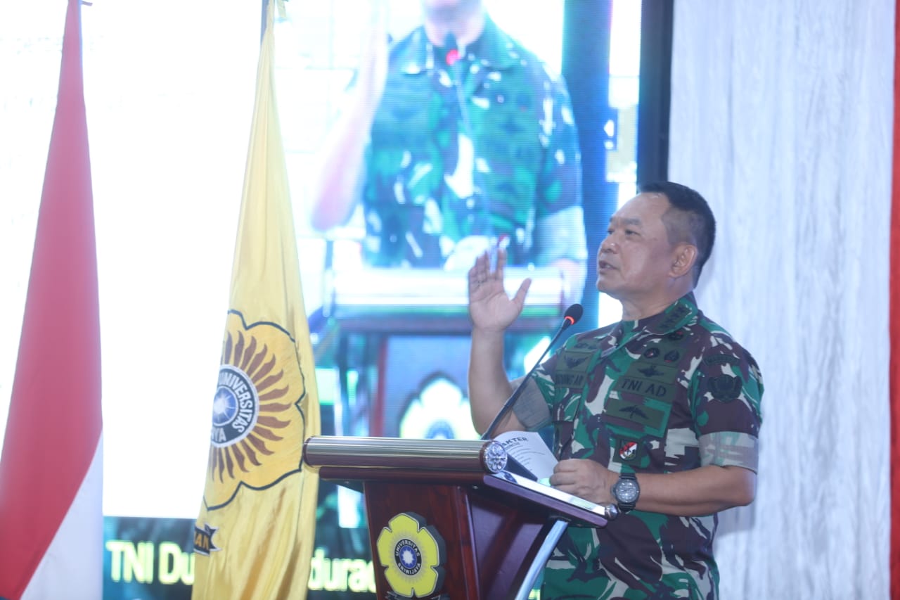 Palembang – Kepala Staf Angkatan Darat (Kasad) Jenderal TNI Dudung Abdurachman, S.E., M.M., mengatakan melihat kondisi Indonesia saat ini, kita sebagai bangsa perlu untuk mengingat kembali sejarah perjuangan bangsa serta semangat para pendiri bangsa dalam menyusun dasar negara. “Karena pertahanan negara bukan semata menjadi domain TNI, melainkan menjadi tanggung jawab seluruh komponen bangsa, termasuk mahasiswa, “ kata Kasad saat memberikan kuliah umum Ketahanan Nasional kepada mahasiswa Unsri, bertempat di FH Tower Lantai VIII, Bukit Besar Universitas Sriwijaya, Palembang, Senin (7/3/2022).