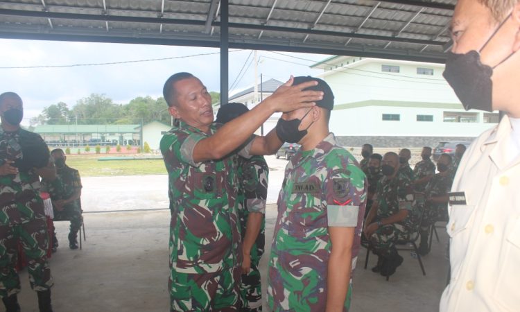 Diakhir makan bersama Brigjen TNI M Jangkung memberikan kenang-kenangan topi kebanggan seragam untuk seluruh prajurit dan PNS Korem 045/Gaya.