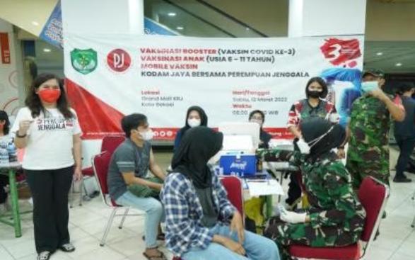 Jakarta – Kodam Jaya Jayakarta kembali berkolaborasi bersama Perempuan Jenggala melakukan gerakan vaksinasi booster dan vaksinasi untuk anak usia 6-11 tahun di enam lokasi di kawasan Bekasi, Jawa Barat 13/3/2022).