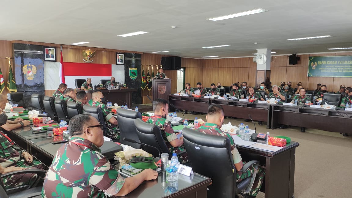 Apresiasi ini disampaikan Pangdam yang didampingi Kasdam XVIII/Kasuari, Brigjen TNI Yusuf Ragainaga dalam sambutannya saat membuka acara Rapat Pimpinan (Rapim) Kodam XVIII/Kasuari Tahun Anggaran (TA) 2022, di ruang Yudha, Makodam XVIII/Kasuari, Trikora, Arfai 1, Manokwari, Papua Barat, Kamis (17/3/2022).