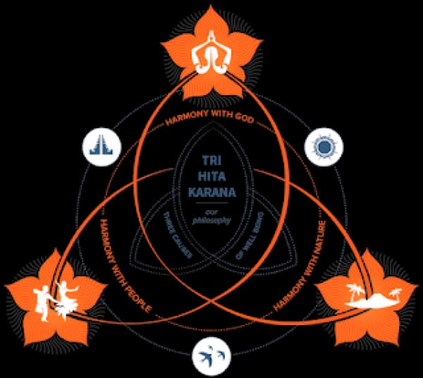 Dengan menerapkan Tri Hita Karana secara mantap, kreatif dan dinamis akan terwujudlah kehidupan harmonis yang meliputi pembangunan manusia seutuhnya yang astiti bakti terhadap Sanghyang Widhi Wasa/ Tuhan Yang Maha Esa, cinta kepada kelestarian lingkungan serta rukun dan damai dengan sesamanya.