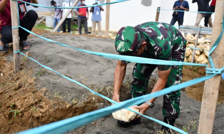 Bone – Pangdam XIV/Hasanuddin Mayjen TNI Andi Muhammad S.H., didampingi Ketua Persit Kartika Chandra Kirana PD XIV/Hasanuddin Ny. Amelia Andi Muhammad melakukan peletakan batu pertama pembangunan gedung SMP Islam Modern Al-Falah tepatnya di Jl. Majang Kel. Majang, Kec. Tanete Riattang Barat, Kab. Bone, Sabtu (26/03/2022).