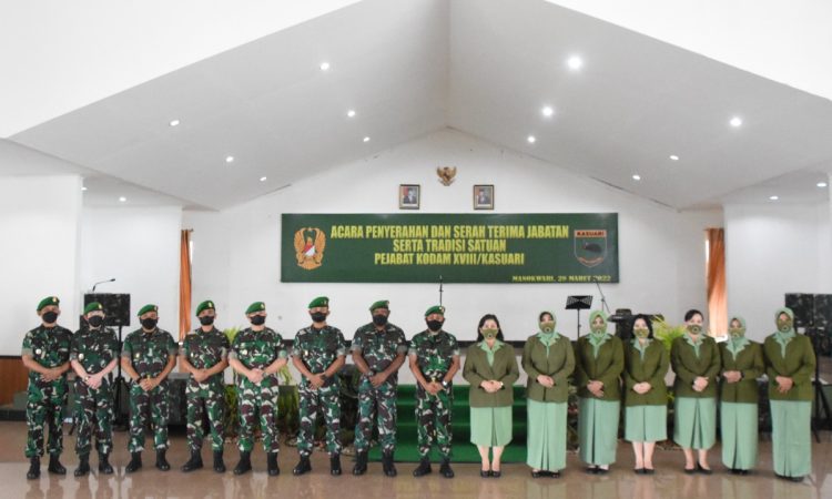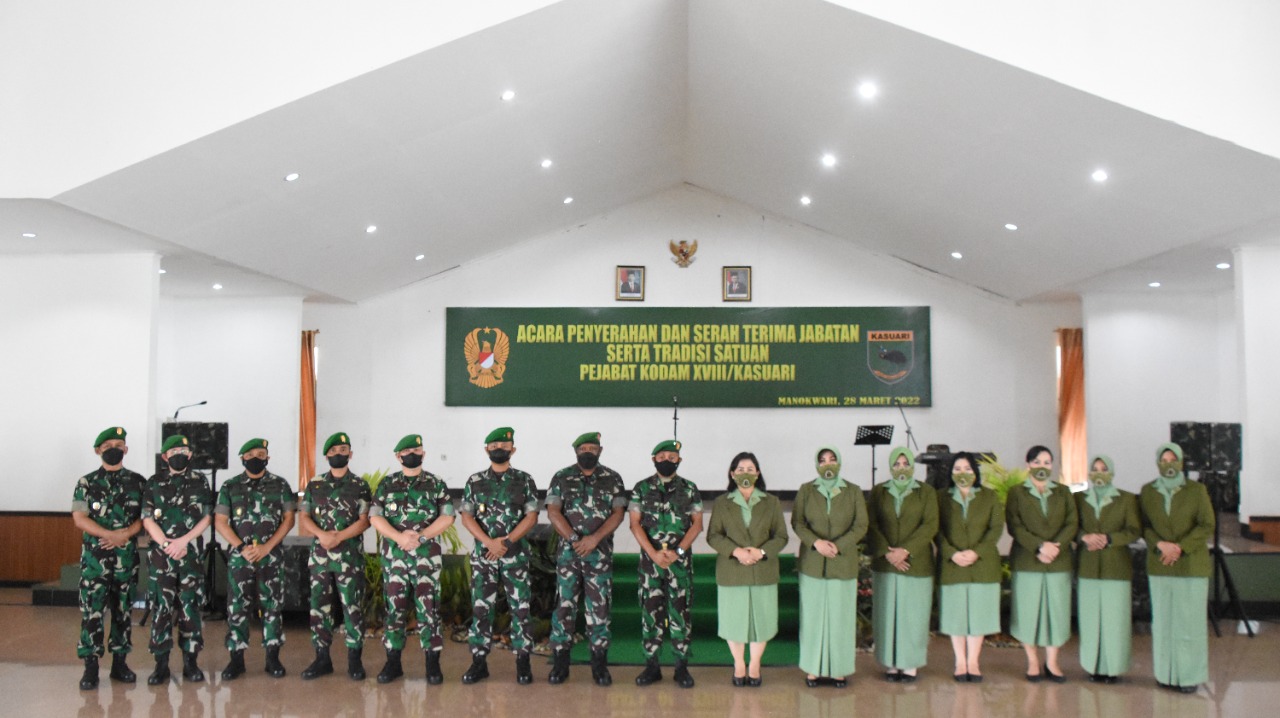 Selain serah terima para pejabat Kodam, pada kegiatan ini sekaligus dilaksanakan dengan sertijab para Ketua Cabang dan Ranting maupun pengurus Persit KCK PD XVIII/Kasuari. Ikut hadir dalam kegiatan ini Kasdam XVIII/Kasuari, Brigjen TNI Yusuf Ragainaga dan para pejabat Kodam, Ketua Persit KCK Daerah XVIII/Kasuari beserta pengurus.