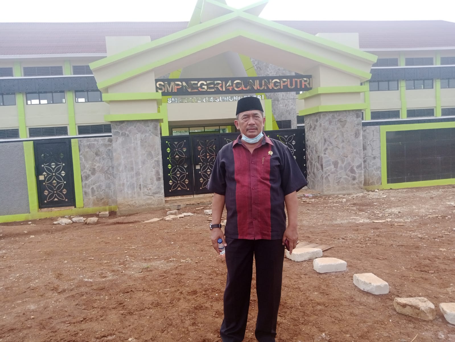 Anggota Komisi II DPRD Kabupaten Bogor Adi Suwardi meninjau bangunan Gelanggang Olahraga Masyarakat (GOM) dan SMPN 4 Gunung Putri, Kecamatan Gunung Putri Kabupaten Bogor.