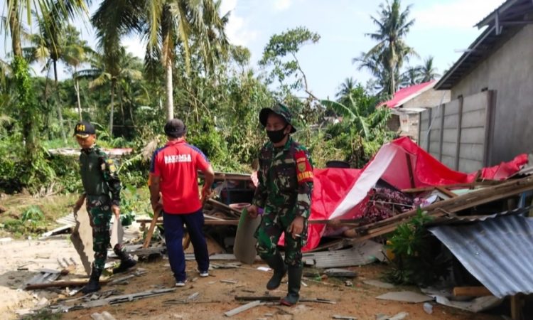 “Semoga hal kecil yang kami lakukan, dapat membantu meringankan beban dan kerugian dari korban angin puting beliung,”ujar Letkol Bakamla Leo di tengah-tengah kesibukannya membereskan puing-puing bangunan. (Humas Bakamla RI)