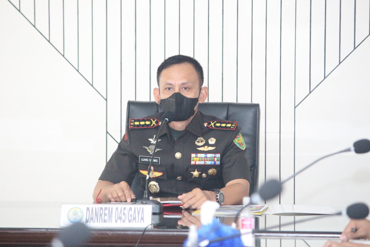 Sementara Danrem 045/Gaya Kolonel Inf Ujang Darwis, MDA didampingi Kasiops Kasrem 045/Gaya, para Dandim jajaran dan Kepala Karumkitban 02-09.02 Pangkalpinang mengikuti vicon tersebut di ruang rapat Makorem 045/Garuda Jaya jl.Pulau Bangka Komplek Pemprov Kel.Air Itam Kec. Bukit Intan Kota Pangkalpinang, Selasa 05/04/2022.