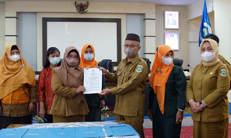 PANGKALPINANG – Sekretaris Daerah Kota Pangkalpinang, Radmida Dawam menghadiri acara penandatanganan perjanjian kerja sama Sekolah Ramah Anak (SRA) antara Dinas Pendidikan dan Kebudayaan dengan Dinas Kependudukan dan Pencatatan Sipil Kota Pangkalpinang di Ruang OR Kantor Wali Kota Pangkalpinang, Selasa (12/4/2022).