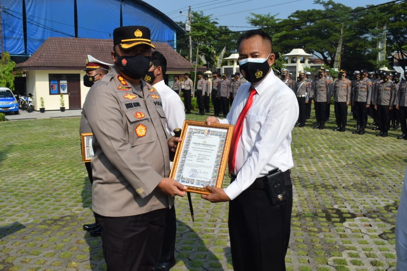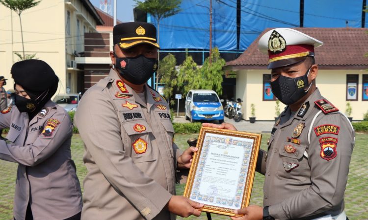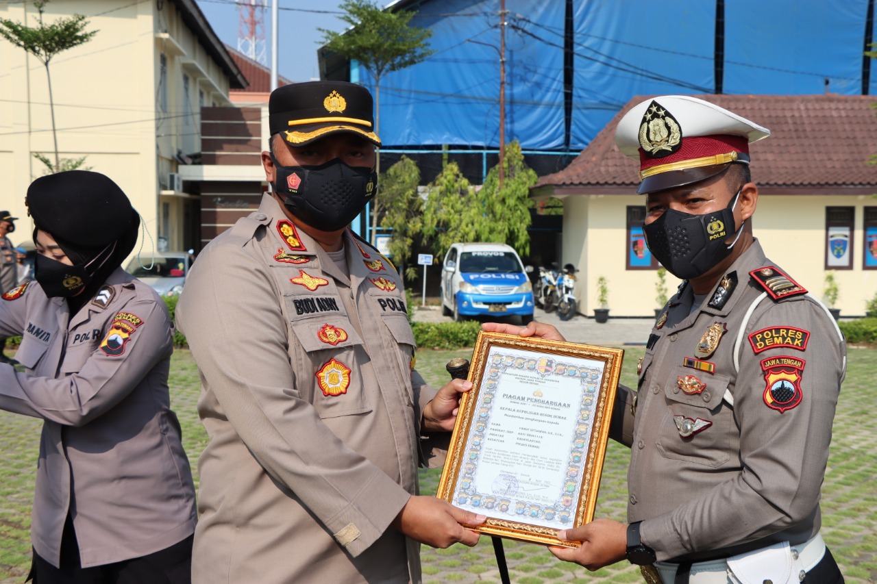 Demak – Kapolres Demak AKBP Budi Adhy Buono memberikan penghargaan kepada personel Polres Demak yang berprestasi dalam pelaksanaan tugas.