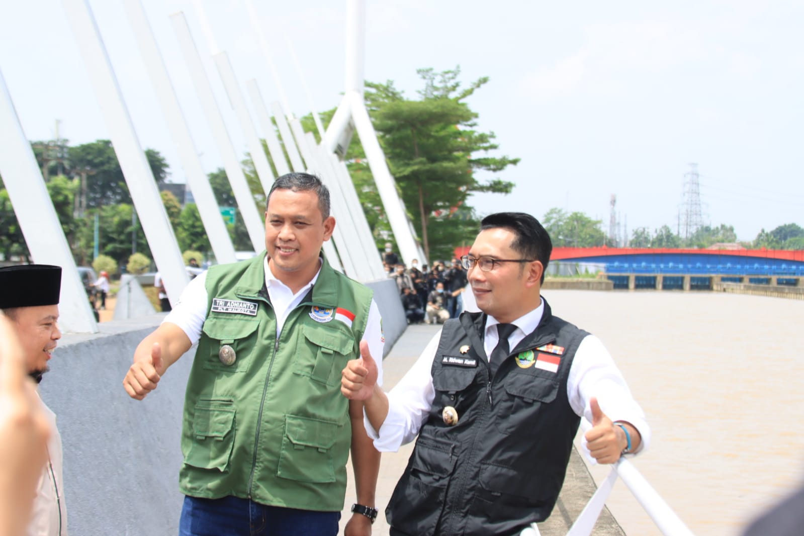KOTABEKASI – Rabu 20 April 2022, Selepas acara peresmian Pasar Jabar Juara dan mengunjungi Kampung Bali di Harapan Jaya, Plt Wali Kota Bekasi Tri Adhianto bersama Gubernur Jawa Barat Ridwan Kamil menghadiri acara peresmian fasilitas umum Taman Tarum Bhagasasi, Kalimalang, Kota Bekasi Jawa Barat.