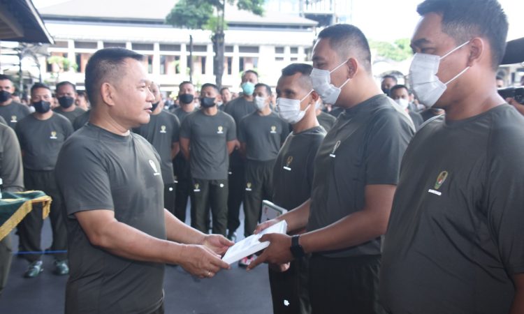 JAKARTA – Kepala Staf Angkatan Darat (Kasad) Jenderal Dudung Abdurachman, S.E, M.M., merealisasikan komitmennya untuk meningkatkan kesejahteraan bagi para prajurit dan PNS di lingkungan Angkatan Darat dengan mendistribusikan Susu Serdadu dalam bingkisan lebaran yang dibagikan kepada para prajurit, PNS, para teknisi hingga petugas kebersihan di Markas Besar Angkatan Darat, Selasa (26/4/2022).