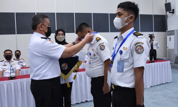 Acara diakhiri dengan pelepasan tanda peserta dan pemberian sertifikat kepada perwakilan peserta oleh Sestama Bakamla Laksda TNI S. Irawan. (Humas Bakamla RI).