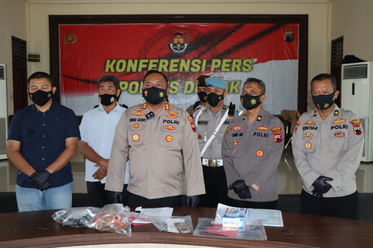 “Tidak kurang dari 12 jam, kita berhasil menangkap pelakunya dan kini masih dalam pemeriksaan,” kata Kapolres Demak AKBP Budi Adhy Buono saat konferensi pers di Mapolres Demak, Kamis (26/5/2022).