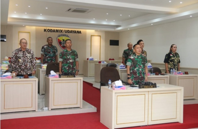 Secara virtual, acara tersebut juga digelar di Ruangan Puskodalopsdam IX/Udayana, diikuti oleh Irdam IX/Udayana Brigjen TNI Tatan Ardianto, S.I.P., didampingi Kasrem 163/WSA dan dihadiri Ketua GM FKPPI Provinsi Bali dan Wakil Ketua Pengurus Daerah PPM Bali.