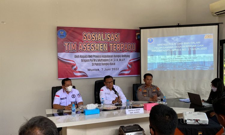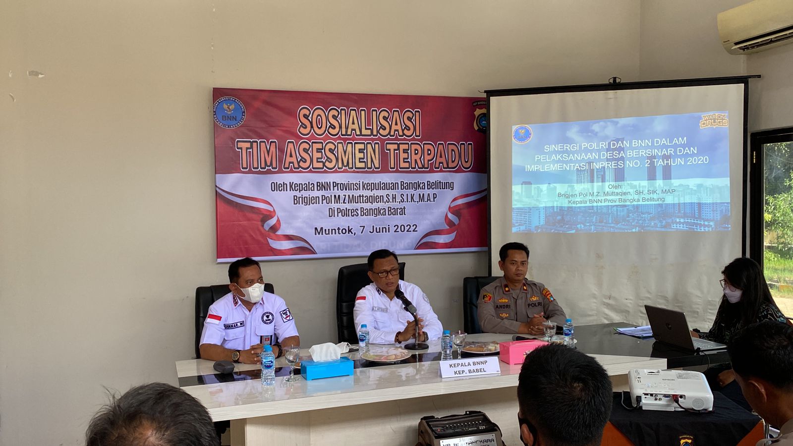 “kami menerima kunjungan kepala BNN Provinsi Kepulauan Bangka Belitung untuk berkoordinasi beberapa hal menyangkut Sosialisasi tim asesmen terpadu ( TAT ),” ujar Wakapolres.