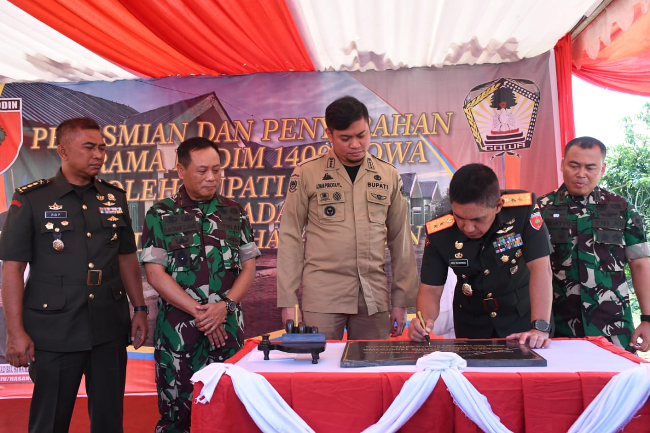 Pada kesempatan ini Pangdam Hasanuddin menyampaikan rasa syukur dan apresiasi kepada pemerintah Kabupaten Gowa serta terima kasih atas tambahan tempat tinggal atau asrama yang diperuntukkan untuk Kodim 1409/Gowa.