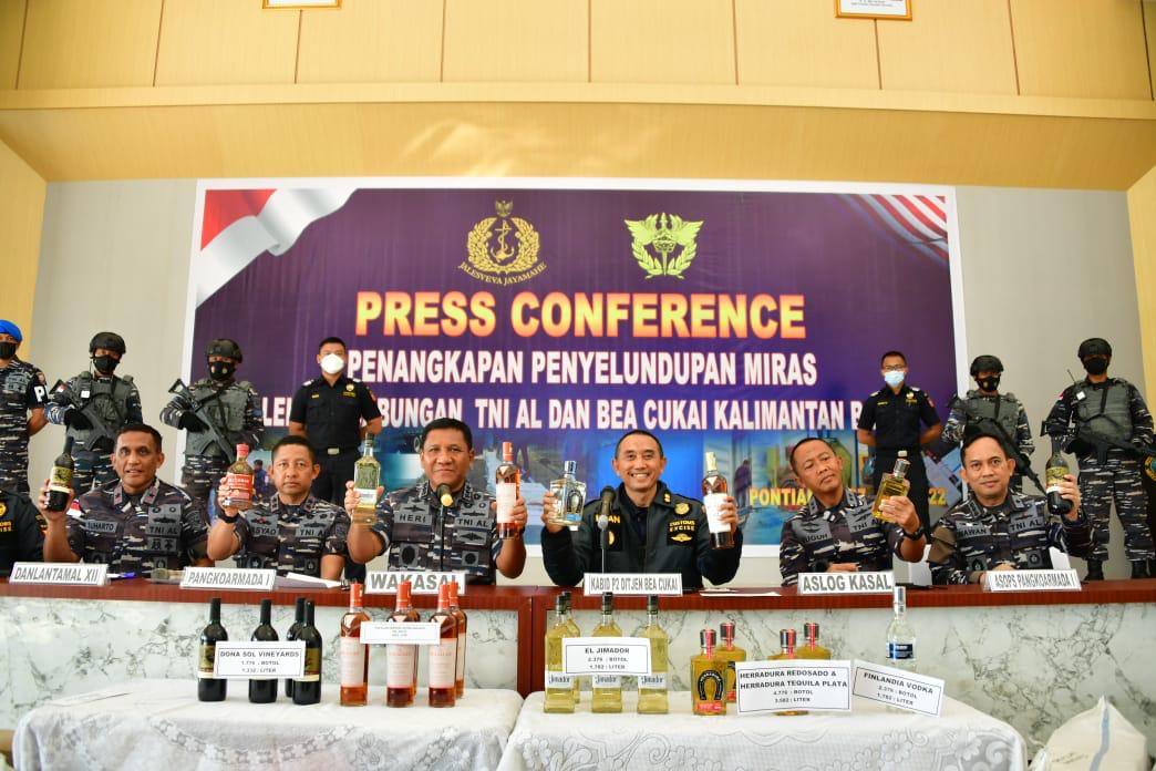 Wakil Kepala Staf Angkatan Laut (Wakasal) Laksamana Madya TNI Ahmadi Heri Purwono dihadapan awak media saat menggelar konferensi pers di Mako Satrol Lantamal XII, Senin (27/6) mengatakan kronologi penangkapan berawal dari informasi Intelijen yang diterima oleh tim F1QR Lantamal XII Pontianak dilapangan pada hari Sabtu (25/6) bahwa akan ada upaya penyelundupan minuman keras illegal dari Malaysia dengan menggunakan 3 (tiga) unit truk di daerah Bengkayang.