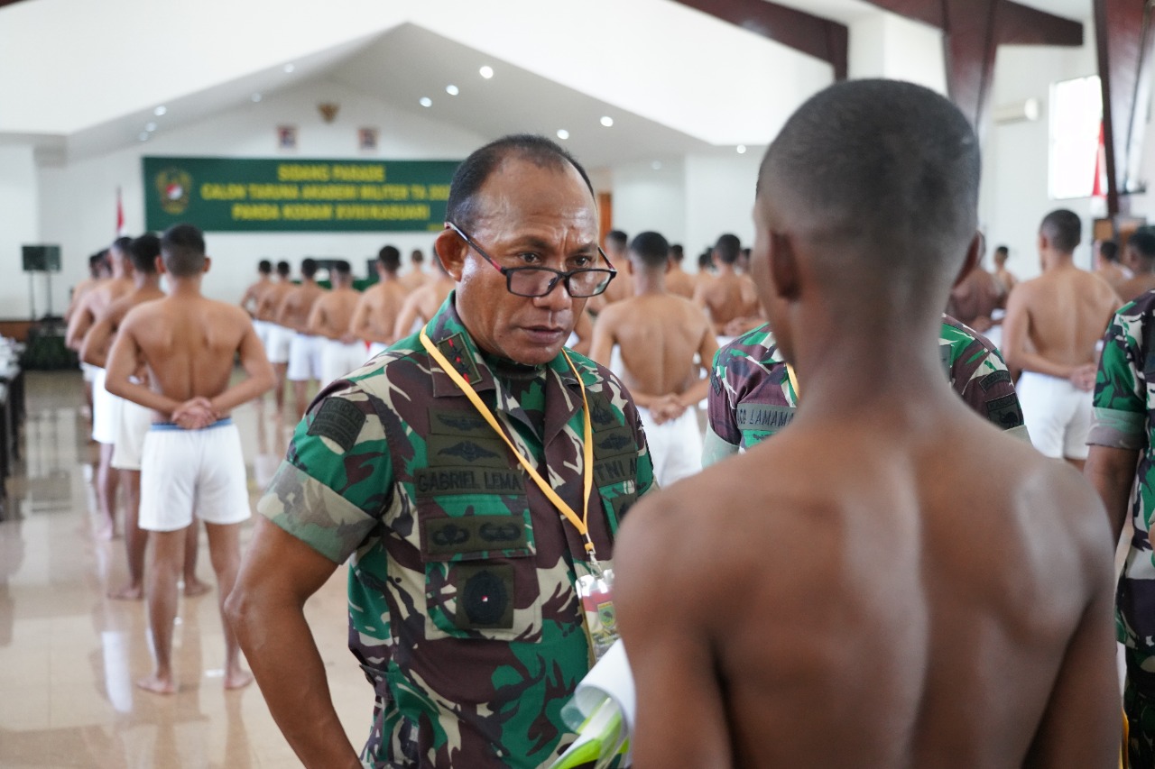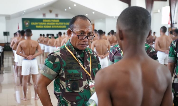Manokwari – Pangdam XVIII/Kasuari, Mayjen TNI Gabriel Lema, S.Sos., didampingi Kasdam, Brigjen TNI Yusuf Ragainaga memimpin Sidang Penilaian Panitia Penentu Akhir (Pantukhir) Daerah Calon Taruna Akademi Militer (Akmil) TA 2022, di Aula Makodam, Trikora, Arfai 1, Manokwari, Papua Barat, Rabu (29/6/2022).