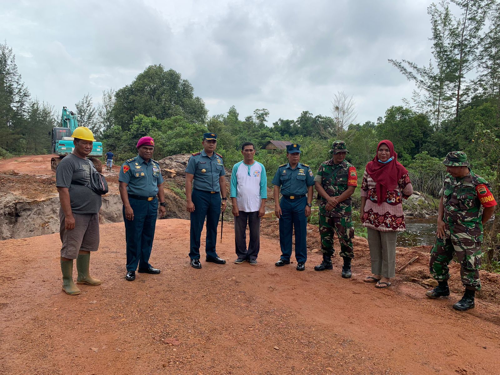Dabo Singkep-Danlanal Dabo Singkep Letkol Laut (P) Faruq Dedy Subiantoro, S.T., M.Tr.Opsla., meninjau langsung jalan terputus akibat cuaca ekstrim di kawasan Todak, Desa Persiapan Kebun Nyiur, Kecamatan Singkep, Kabupaten Lingga, Kamis (30/6/2022)