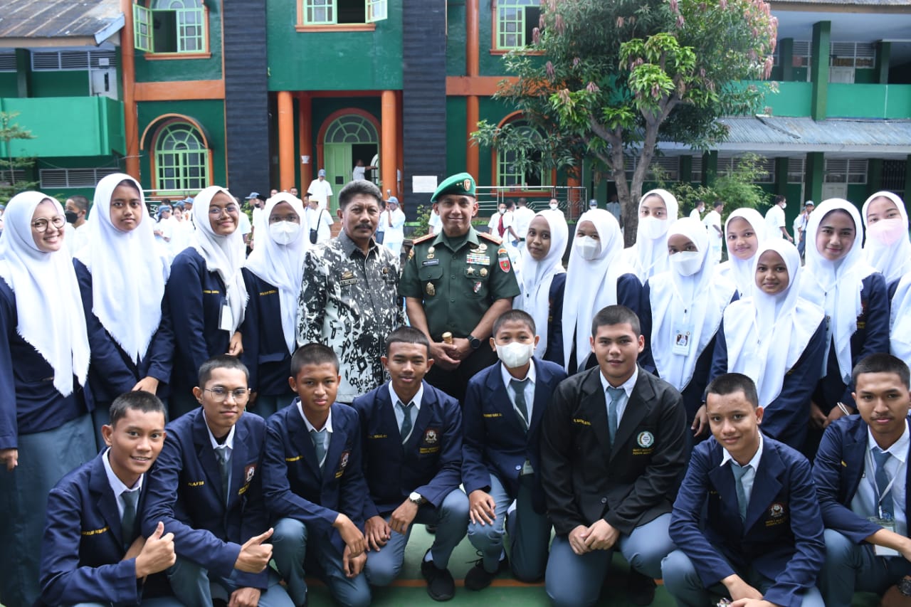 Di awal sambutannya Pangdam Hasanuddin menyampaikan rasa terima kasih kepada Kepala Sekolah dan para Guru SMAN 2 Makassar yang telah menyambut dengan penuh keakraban dan hubungan emosional.