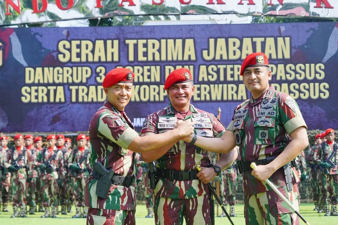 Serah terima jabatan tersebut meliputi Dangrup 3 Kopassus dari Kolonel Inf R. Iskandarmanto kepada Kolonel Inf Donny Pramono, Asisten Teritorial Kopassus dari Kolonel Inf Edwin Apria Candra kepada Letkol Inf Irfan Amir, Asisten Perencanaan Kopassus dari Kolonel Inf Yusuf Rizal kepada Letkol Inf Raymond Sitanggang.