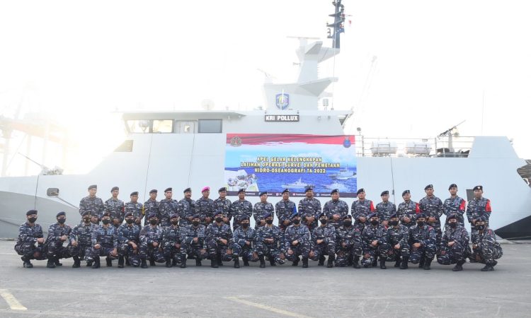 Jakarta – Komandan Lantamal III Jakarta Brigjen TNI (Mar) Umar Farouq, S.A.P., CHRMP., M.Tr.Opsla., M.Han. hadiri Pelepasan Peserta Latihan Operasi dan Pemetaan Hidro-Oseanografi TA. 2022 di Dermaga JICT 2 Tanjung Priok Jakarta Utara, Kamis (28/07/2022).