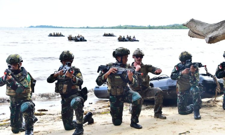 Jakarta – Guna meningkatkan naluri tempur personil, serta menguji kesiapan operasional materil serta kerja sama yang baik dalam Latihan Gabungan Bersama (Latgabma) Super Garuda Shield 2022 (SGS 2022), Tim Intai Amfibi (Taifib) Marinir TNI Angkatan Laut (TNI AL) bersama US MEU Recon US Marine melaksanakan Sinkronisasi Teknik dan Taktik dengan yang dilaksanakan di Batalyon 10 Marinir/BS, Setoko, Batam, Kepulauan Riau. Sabtu (30/07).