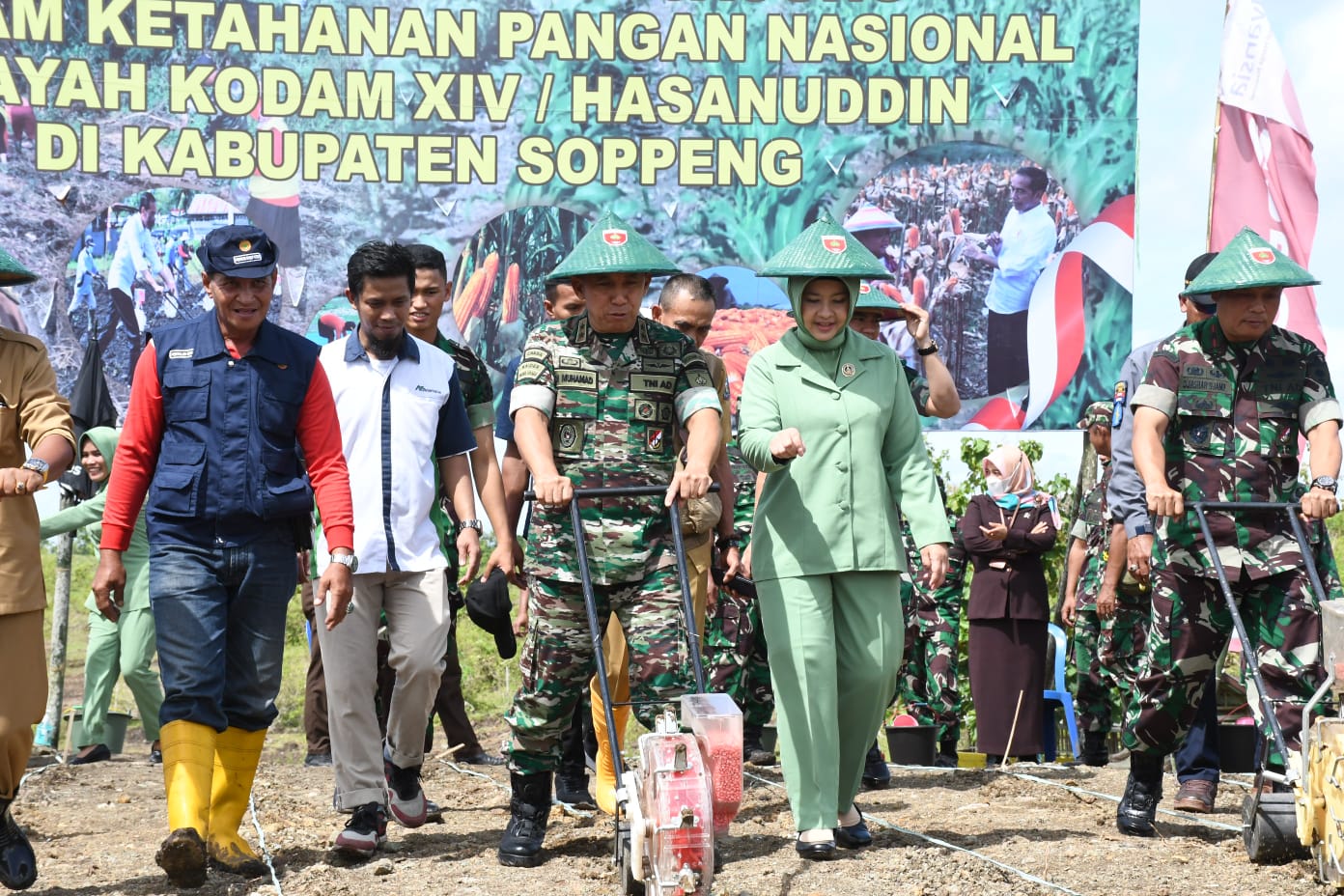 “Terkait dengan penanaman jagung di daerah ini, maka Kodam XIV/ Hasanuddin melalui jajaran Komando Kewilayahan yang ada di daerah merasa terpanggil untuk melakukan kegiatan ini, sebagai wujud dukungan TNI AD terhadap program pemerintah dalam meningkatkan ketersediaan pangan khususnya di Kabupaten Soppeng sebagai daerah yang sangat produktif untuk bercocok tanam khususnya jagung,” Lanjutnya.