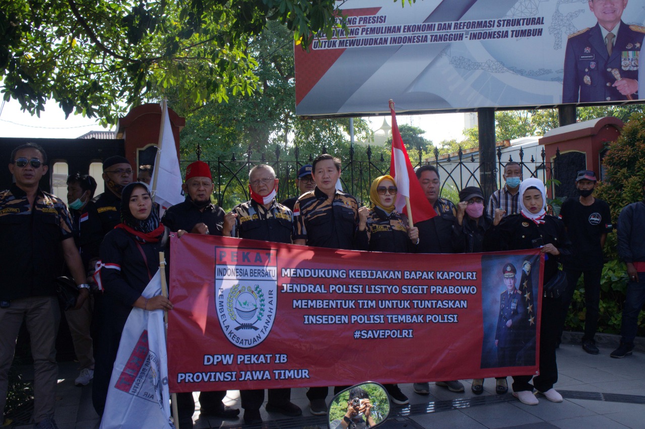 Dipimpin langsung Ketua Dewan Penasehat Pekat IB Jatim Hartanto Boechori, Sekretaris Pekat IB Jatim Rani Maharani dan Ketua OKK Sumidi, 50 pengurus dan anggota Pekat IB DPW Jatim turun ke jalan mendengungkan aksi mendukung Kapolri menuntaskan Penegakan Hukum terbunuhnya Brigadir Nofriansyah Yosua Hutabarat alias Brigadir J.