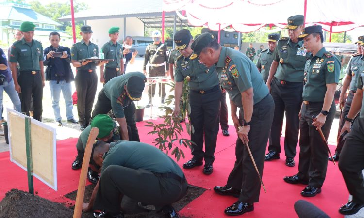 Pangkalpinang – Dalam mendukung program pemerintah untuk mengatasi pemanasan global dan meningkatkan kesejahteraan Prajurit, Kepala Staf Angkatan Darat (Kasad) Jenderal TNI Dr. Dudung Abdurachman, S.E., M.M., dalam kunjungan kerjanya ke Makorem 045/Garuda Jaya meninjau pangkalan, kesiapan personel dan materiil satuan Korem 045/Gaya sekaligus menyempatkan diri menanam pohon Durian Cumasi.