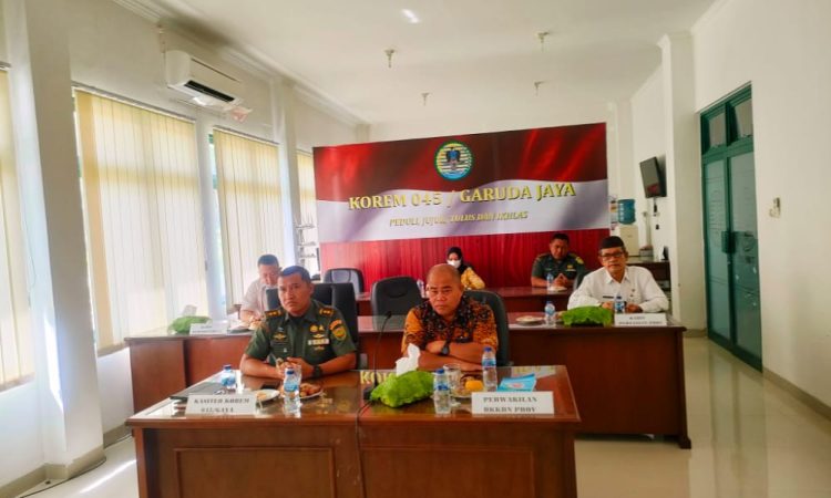 Pangkalpinang – Kasiter Kasrem Letkol Kav Mujahidin, S.Sos. mewakili Danrem 045/Gaya Brigjen TNI Ujang Darwis,MDA., Menghadiri Acara Vicon Komsos TNI dengan aparat pemerintahan Tahun 2022, bertempat di Ruang Vicon Makorem 045/Gaya Jl. Pulau Bangka Kel. Air Itam Kec. Bukit Intan Kota Pangkalpinang, Rabu 31/08/2022.