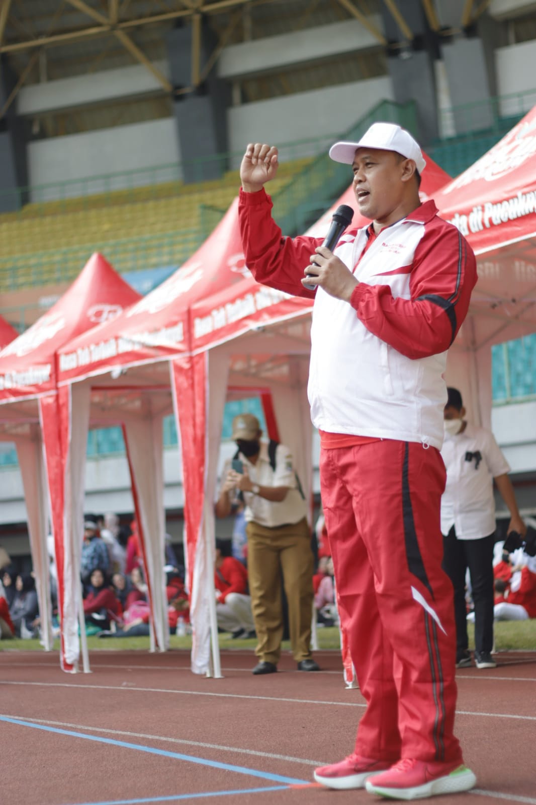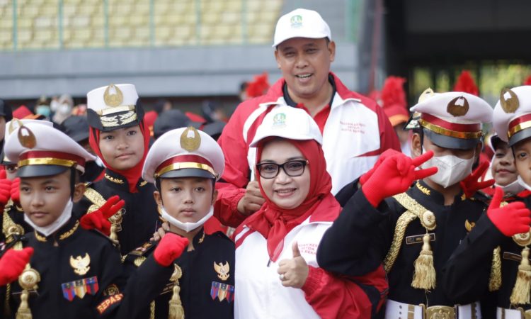 Tri bersama Istri tampak terlihat antusias menyapa setiap peserta yang telah dibariskan, bahagia bercampur haru saat Plt. Wali Kota Bekasi melihat semangat yang luar biasa para peserta yang hadir.