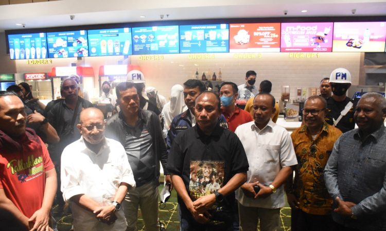 Manokwari – Pangdam XVIII/Kasuari Mayjen TNI Gabriel Lema, S.Sos bersama jajaran Forkopimda dan masyarakat Manokwari Papua Barat nonton bareng film “Taklukkan Mimpi” karya sineas anak Papua Barat, di Studio 1 Bioskop XXI Manokwari, Jumat malam (9/9/2022).