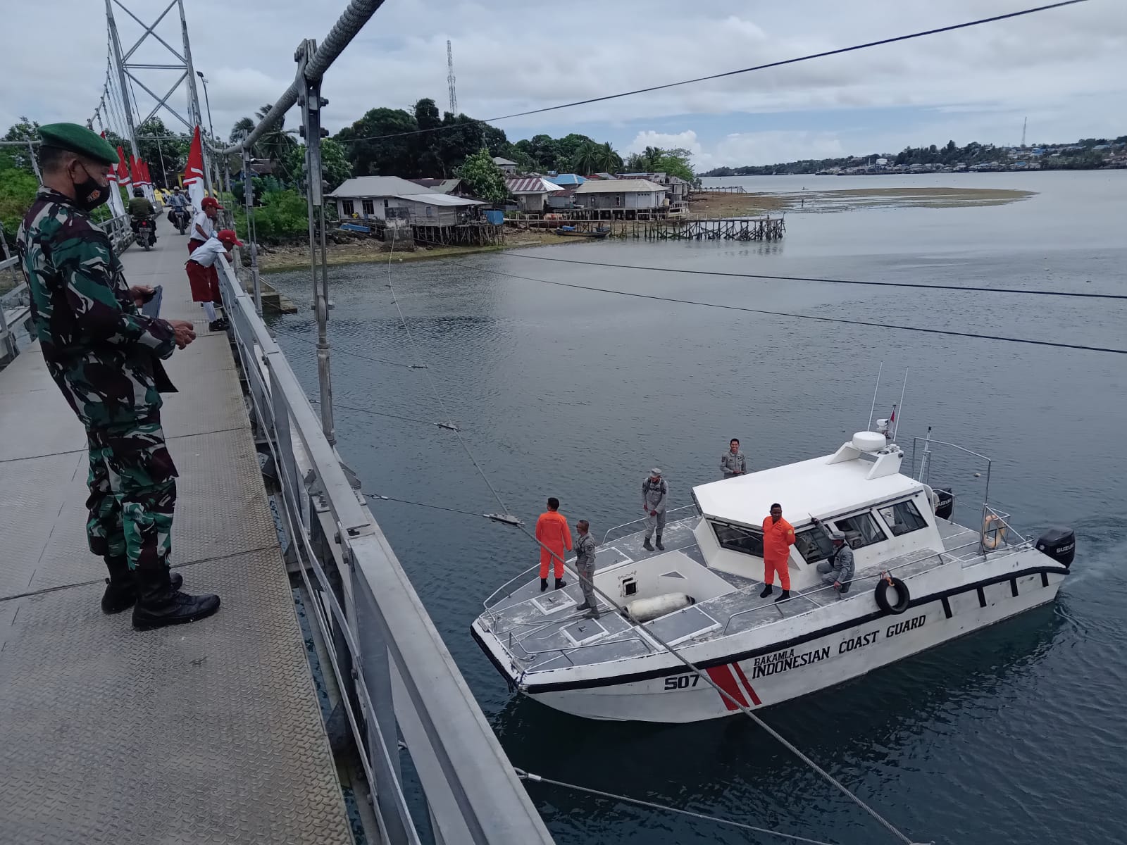 Menanggapi hal tersebut, Bakamla RI melalui Stasiun Bakamla Tual, turut mendukung jalannya pengamanan di sektor laut. Khususnya saat pelaksanaan Peresmian Jembatan Gantung Fair dan Penandatanganan Prasasti, berlokasi di Desa Fair, Kecamatan Dullah Selatan, Kota Tual, kemarin.