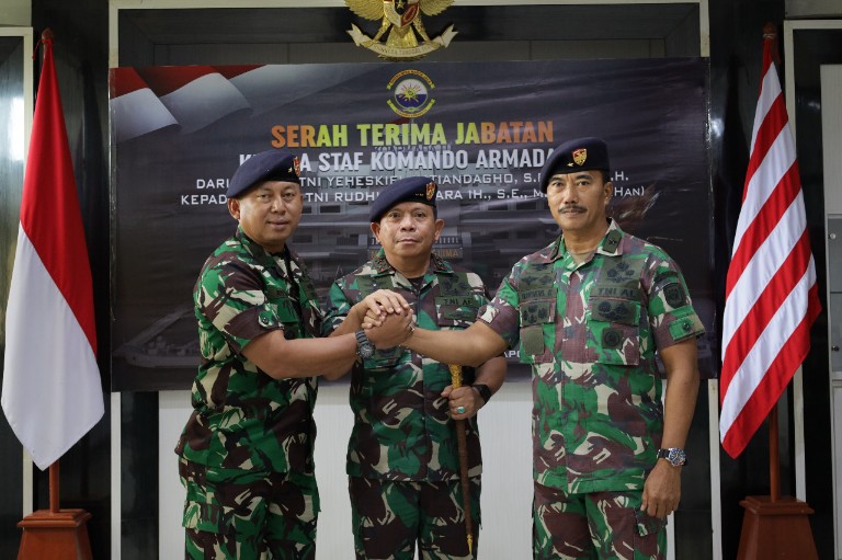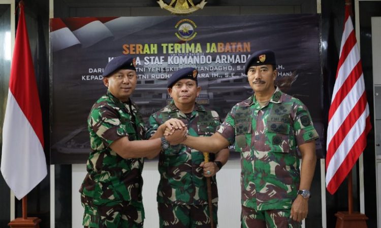 Sorong – TNI AL/ Koarmada III. Bertempat di Pasific Room Mako Koarmada III, Katapop Kabupaten Sorong Papua Barat, Panglima Koarmada (Pangkoarmada ) III Laksamana Muda TNI Irvansyah, S.H., CHRMP., M.TR.Opsla, memimpin serah terima jabatan Kepala Staf Koarmada III dari Laksamana Pertama TNI Yeheskiel Katiandagho, S.E., M.M., M.H., kepada Laksamana Pertama TNI Rudhi Aviantara IH, S.E., M.Si, M.Tr (Han). Senin (19/09/22).