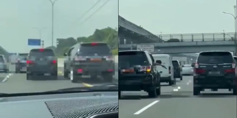 Dalam video berdurasi 1.17 detik yang beredar, tampak pengendara mobil berpelat merah hendak menyalip mobil Toyota Avanza yang melaju di lajur paling kanan. Kondisi jalan raya terlihat cukup padat.