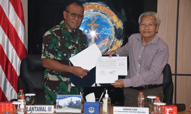 Jakarta – Komandan Lantamal III Jakarta Brigjen TNI (Mar) Umar Farouq , S.A.P., CHRMP., M.Tr. Opsla., M.Han menerima penyerahan lahan dan bangunan SPBU Pademangan milik TNI AL ang sebelumnya dikerjasamakan antara TNI AL dengan PT. Magendra Shatra Pratama, di Rupat Utama Gedung Mako Lantamal III Jl. Gunung Sahari. no. 2 Ancol Jakarta Utara. Senin (19/09).