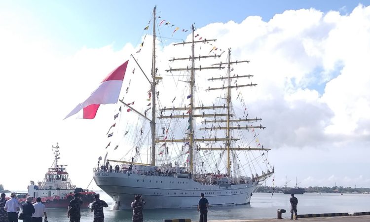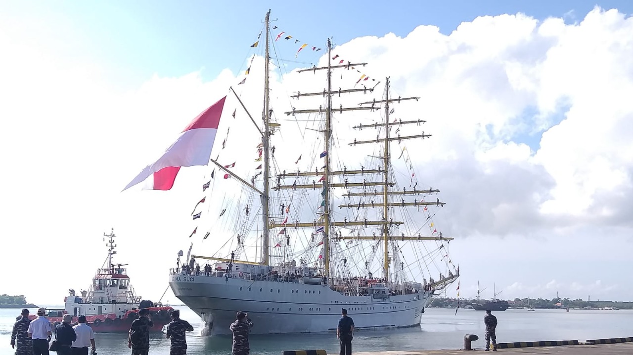 Denpasar – KRI Bima Suci-945 untuk yang kedua kalinya kembali merapat dan bersandar di Dermaga Timur Pelabuhan Benoa, Bali, dalam rangka mendukung latihan praktek pelayaran Kartika Jala Krida (KJK) Taruna/Taruni AAL Angkatan ke-69 Tahun 2022, Selasa (11/10/2022).