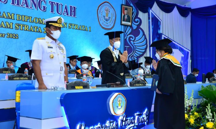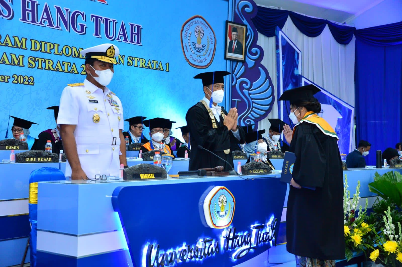 Dalam kegiatan tersebut, Wakasal mewakili Kasal Laksamana TNI Yudo Margono bersama Rektor Universitas Hang Tuah (UHT) Prof. Dr. Ir. Supartono, M.M., CIQar serta jajaran Senat UHT, Wakasal mengukuhkan 38 Sarjana Magister Strata-2, 282 Sarjana Strata-1, dan 125 Sarjana Program Diploma-3 atau D3.