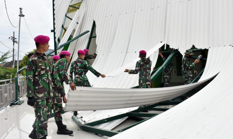 Jakarta – Komandan Pasmar 2 Brigjen TNI Marinir Suherlan menerjunkan prajuritnya yang tergabung dalam Pasukan Reaksi Cepat Penanggulangan Bencana (PPRCB) Pasmar 2 untuk membantu warga korban bencana angin puting beliung yang melanda Kabupaten Sidoarjo, pada Minggu (23/10) sore, tepatnya di sekitaran kawasan kota yang mengakibatkan ratusan rumah warga rusak.