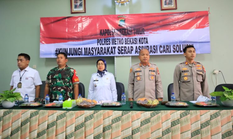 Kota Bekasi – Pos Berita Nasional ,Dalam kegiatan ‘ Serap Aspirasi Cari Solusi ‘ yang di gelar di aula Kecamatan Bekasi Timur pada Selasa, 08/11/2022. Kapolres Metro Bekasi Kota Kombes Pol Hengki S.I.K, M.H hadir didampingi Kapolsek Bekasi Timur AKP Ridha Aditya, Kasat Narkoba Kompol. Guntur, Danramil Teluk Pucung, Camat Bekasi Timur Fitri Widyati.
