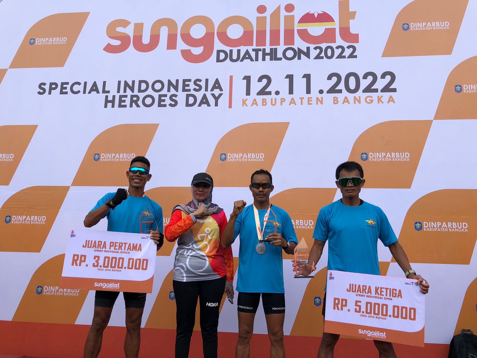 Jakarta – Empat Prajurit TNI Angkatan Laut (TNI AL) menorehkan prestasi dengan mempersembahkan empat medali emas dalam ajang Perlombaan Sungailiat Duathlon Bangka Belitung yang diselenggarakan dalam rangka memperingati Hari Pahlawan bertempat di Kabupaten Bangka, Sabtu (12/11) lalu yang diinisiasi oleh Dinparbud Babel dan Bupati Bangka.