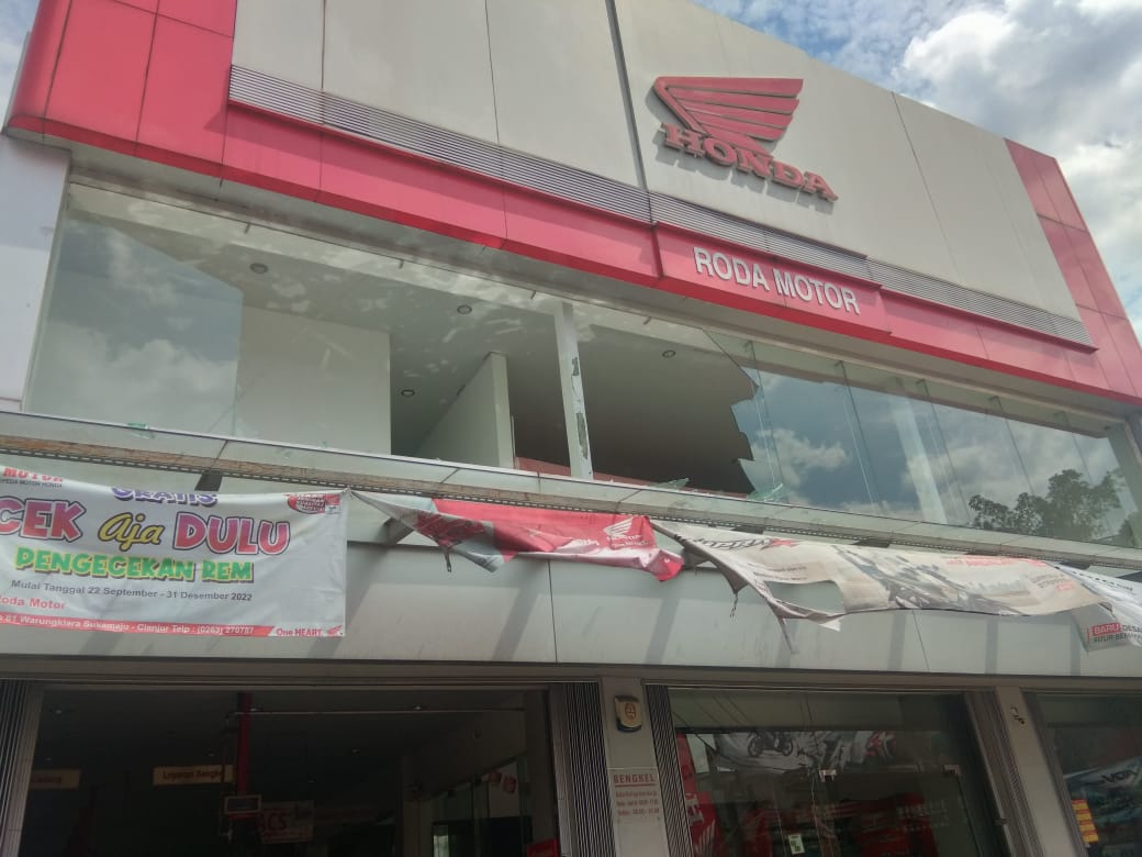 Warga yang sangat panik tanpa berhamburan ke arah jalan. Di sebelah toko tersebut juga terdapat SD, SMP dan SMA Mardiyuana. Bangunan sekolah berlantai dua tersebut tampak rusak digoyang gempa. Banyak bagian atap dan dinding yang rubuh. Pecahan genting dan kaca pun berserakan.