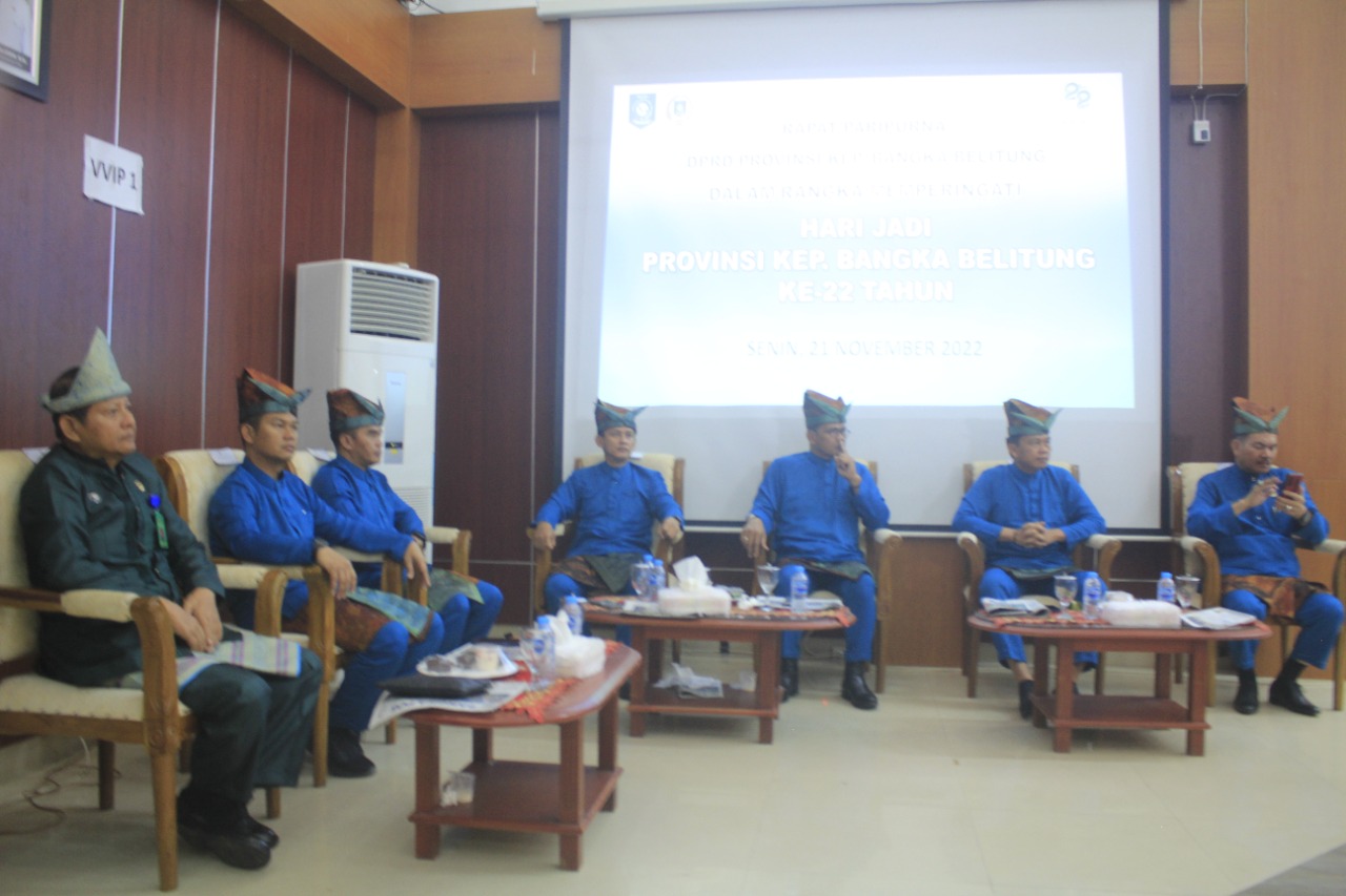 Rapat di gelar di ruang sidang Paripurna DPRD Provinsi Kepulauan Babel Kelurahan Air Itam Kecamatan Bukit Intan Pangkalpinang yang dipimpin oleh Ketua DPRD Provinsi Herman Suhadi dan didampingi Wakil Ketua I Hendra Apolo, Wakil Ketua II M. Amin dan Wakil Ketua III Amri Cahyadi.