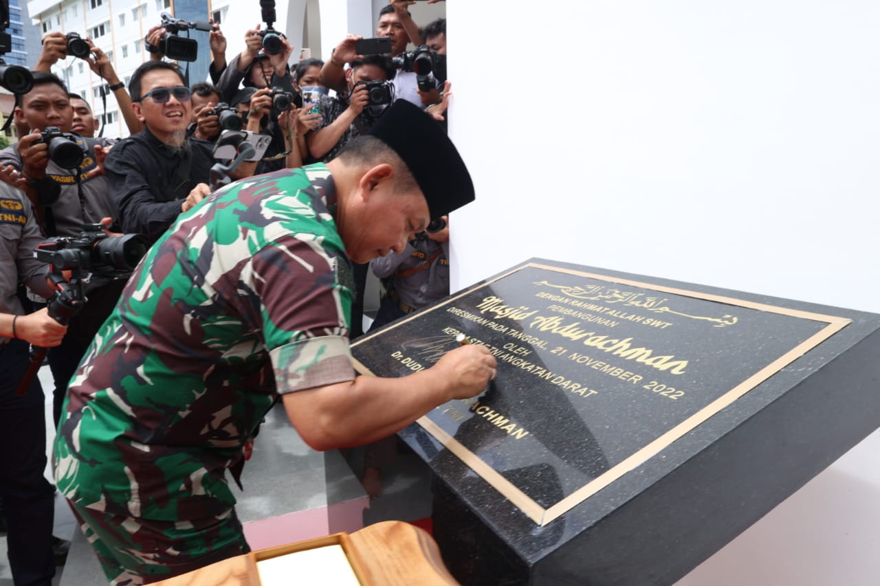 Usai meresmikan Gedung Siber dan Aset Manajemen, Kasad yang didampingi Pangkostrad, Para Asisten Kasad, Dan/Ka Balakpus TNI AD serta Ketua Umum Persit Kartika Chandra Kirana meresmikan Masjid Abdurachman yang didesain dua tingkat dengan ukuran panjang 38 meter dan lebar 24 meter di Mess Mabesad, Pejambon, Jakarta Pusat.