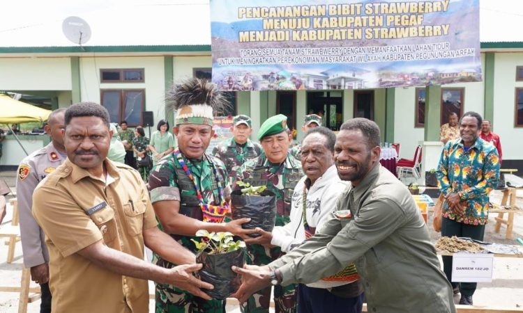 Pencanangan yang diprakarsai Kodam XVIII/Kasuari yakni “Pencanangan Bibit Strawberry Menuju Kabupaten Pegaf Menjadi Kabupaten Strawberry” menjadi tantangan dan tugas bersama untuk mewujudkan kelak Kabupaten Pegaf menjadi daerah penghasil Strawberry terbaik dari Papua Barat.