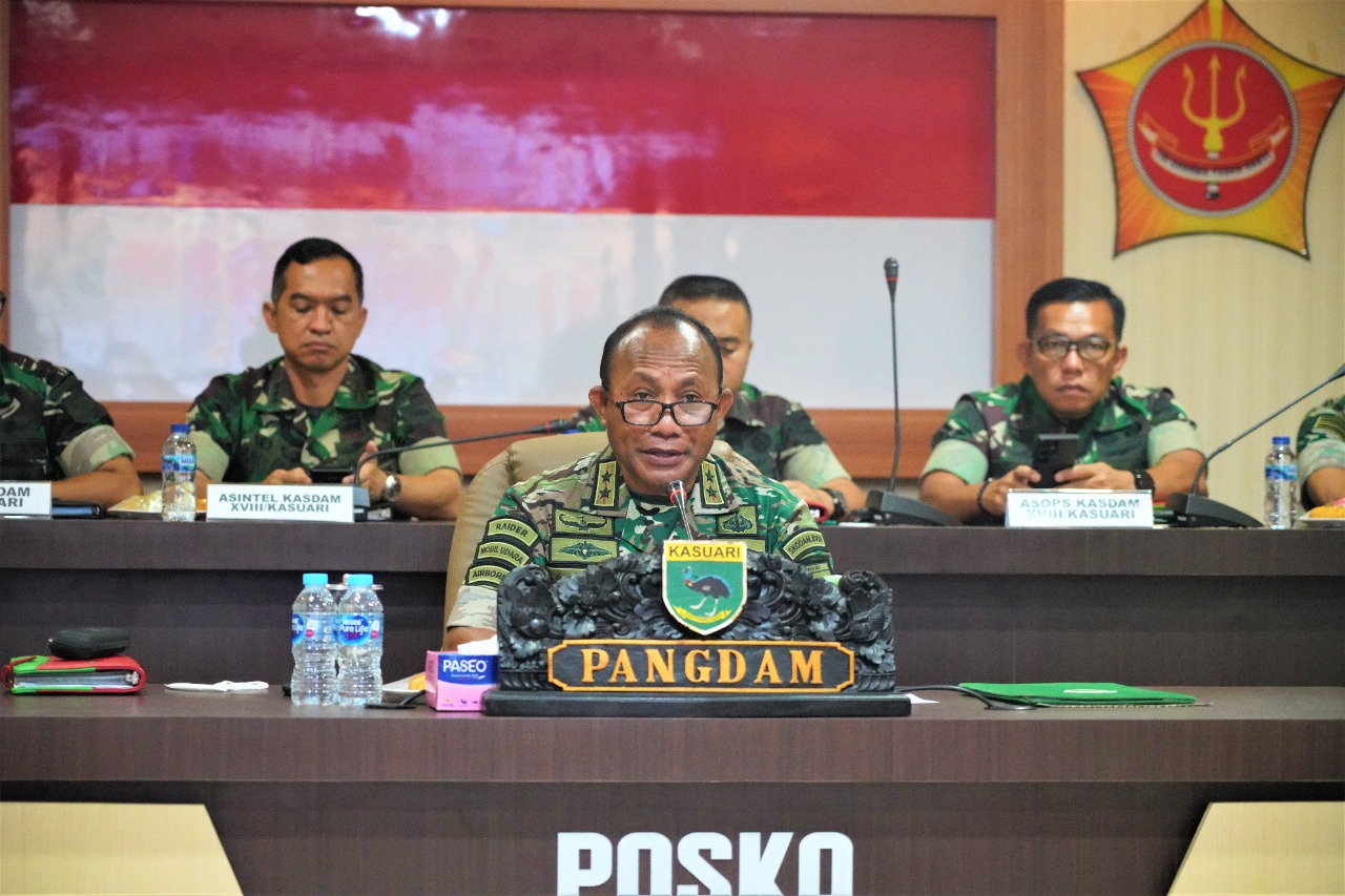 Acara ini juga diikuti Pangdam XVIII/Kasuari, Mayjen TNI Gabriel Lema, S.Sos, yang didampingi para pejabat Kodam XVIII/Kasuari dari ruang Posko Kodam XVIII/Kasuari, Makodam, Trikora, Arfai 1, Manokwari, Papua Barat, Jumat (25/11/2022).