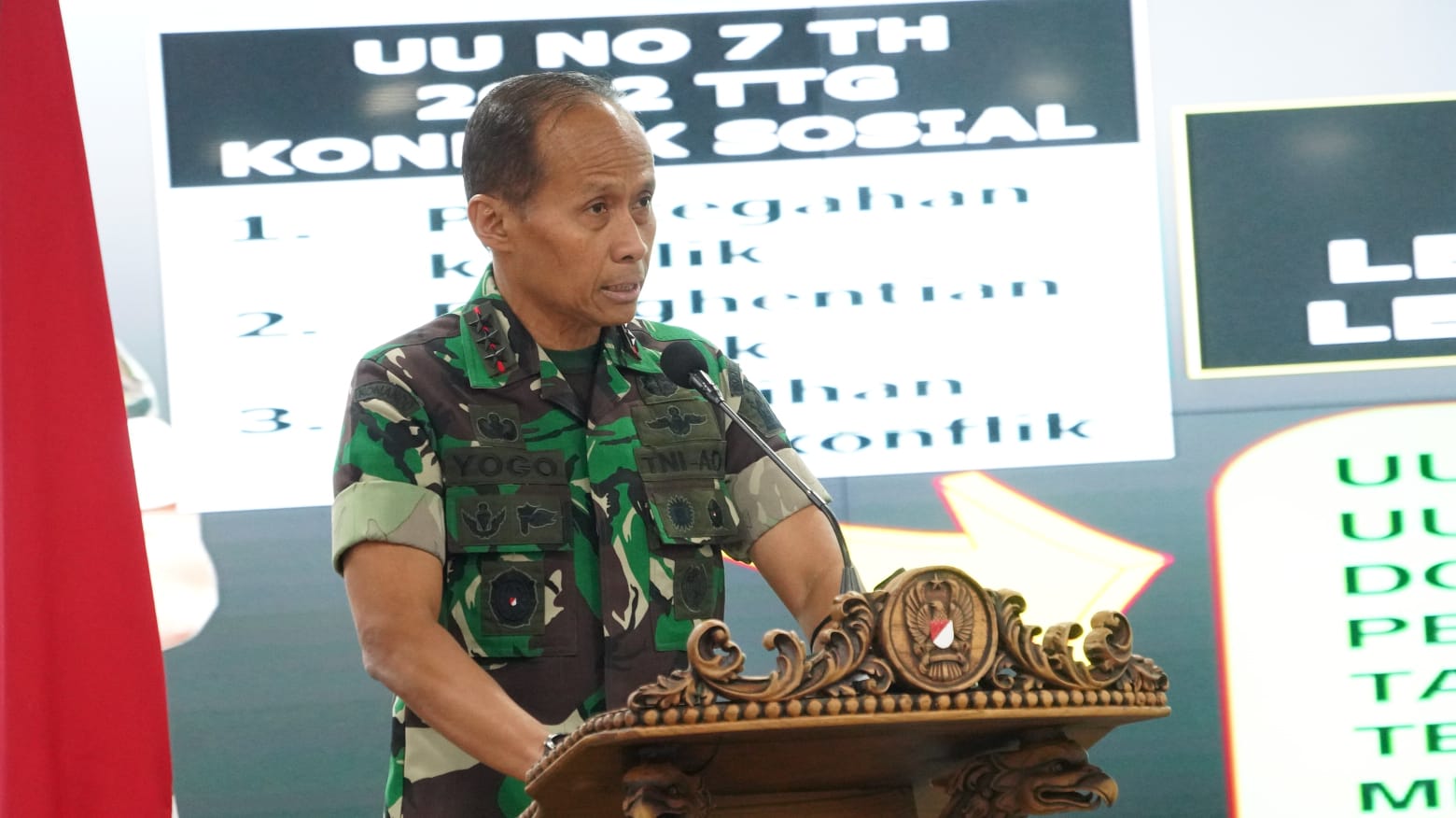 “Mengantisipasi kondisi tersebut, TNI AD memandang perlu untuk ikut ambil bagian dan berperan lebih aktif terutama pada aspek pencegahan selain penghentian dan pemulihan pasca konflik, sehingga kita dapat mengantisipasi dan mencegah timbulnya potensi Disintegrasi Sosial dihadapkan permasalahan-permasalahan yang terdapat di masyarakat secara komprehensif dan berkeadilan, “tegasnya.