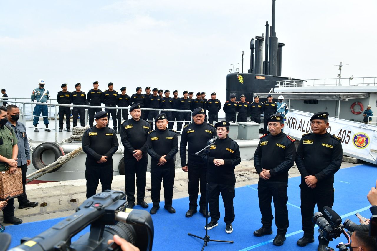 Demikian disampaikan Ketua DPR RI Puan Maharani didampingi Kasal Laksamana TNI Yudo Margono, Kapolri Jenderal Polisi Listyo Sigit Prabowo, Kasad Jenderal TNI Dudung Abdurachman, Kasau Marsekal TNI Fadjar Prasetyo, Anggota 1 BPK RI N.Adhi Suryadyana, serta Wakasal Laksdya TNI Ahmadi Heri Purwono saat jumpa pers dengan awak media setelah resmi menjadi warga kehormatan Hiu Kencana di dalam KRI Alugoro-405 saat berlayar di perairan Teluk Jakarta. Senin, (28/11) kemarin.
